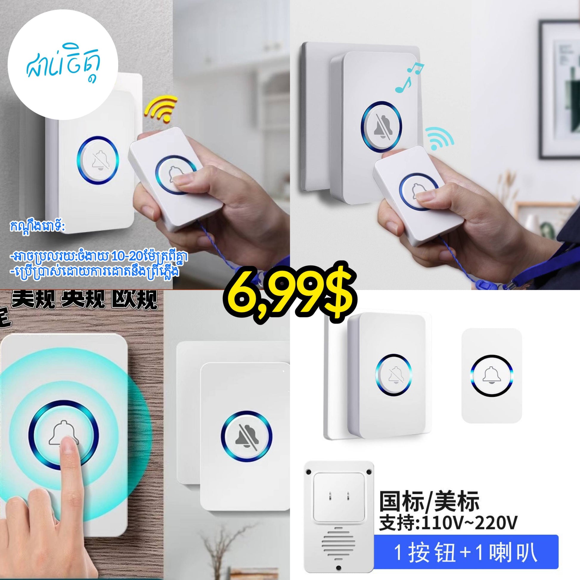 កណ្តឹងសម្រាប់ដាក់នៅក្នុងផ្ទះ ងាយស្រួលដល់ប្រើប្រាស់គ្រាន់តែដោតជាមួយនិងហ្វ្រីភ្លើងអាចប្រើប្រើបានសម្រាប់ចំងាយសម្លេងរហូតដល់ 10m