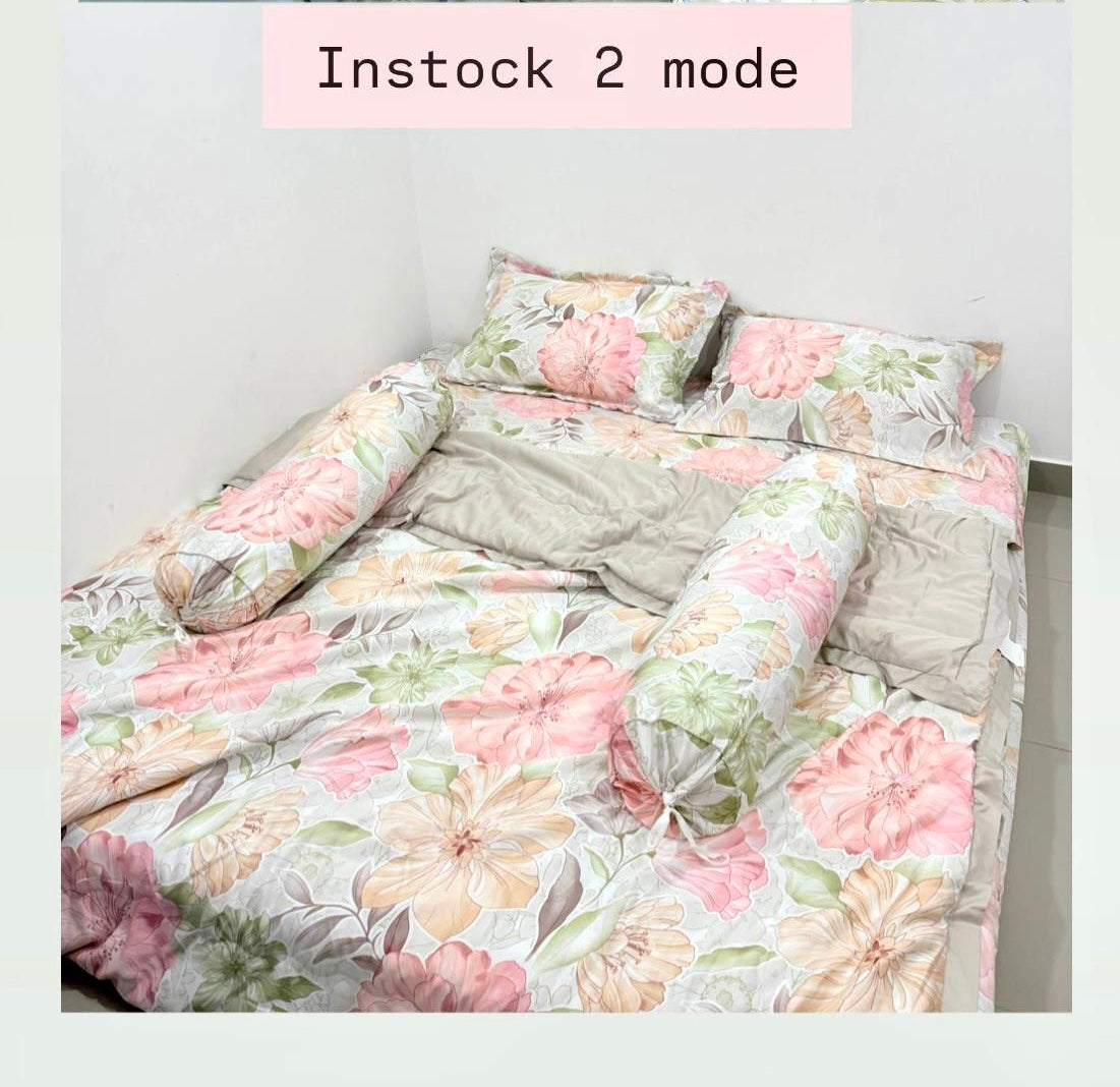 ឈុតកម្រាលពូកសូត្រទឹកកក5in1 ពណ៍ផ្កាឈូកមានស្រោមខ្នើយ2ស្រោមខ្នើយអោប2កម្រាលពូក1និងភួយសំឡី1 ទំហំ1.8x200cm