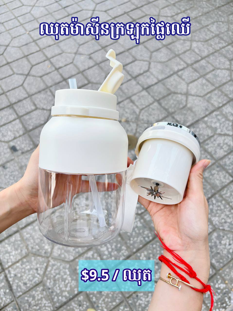 ម៉ាសុីនក្រឡុកផ្លែឈើ ចង់ញាំផ្លែឈើស្រស់ៗមិនពិបាកដោតឌុយ ជាប្រភេទសាកថ្មអាចយកទៅតាមខ្លួនបាន